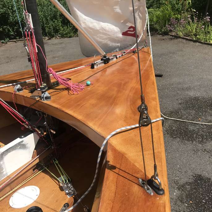 National 12 dinghy no.3498 Development class racing dinghy. West Epoxy System. Marine ply. Double Hull. Inbuilt Buoyancy. Maximum class width. Minimum class weight. Carbon fibre Mast. Carbon fibre Boom. Adjustable Spreaders Cockpit Control Lines for Mast Ram, Shrouds, Forestay, Outhaul, Cunningham and Kicker. Always dry stored. Ready to sail. Sale will include Launching Trolley, Spare set of Sails and Boat Cover. Also Sail and Foil Bags Local Delivery Possible (50kms radius of BH244BU)
