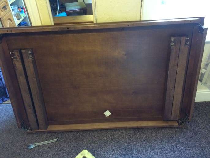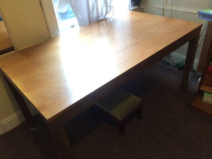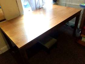 Good condition Dinning Table. Sits 6. Solid wood, and legs unscrew for transport or storage. Too big for my new terrace home.