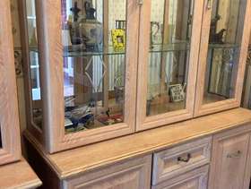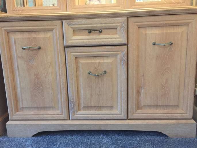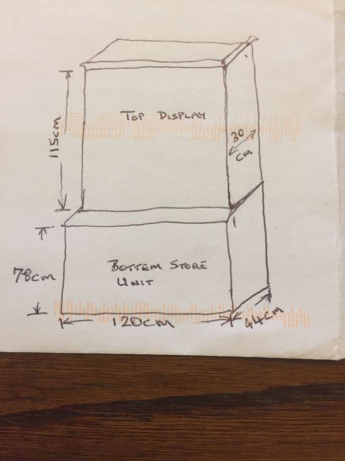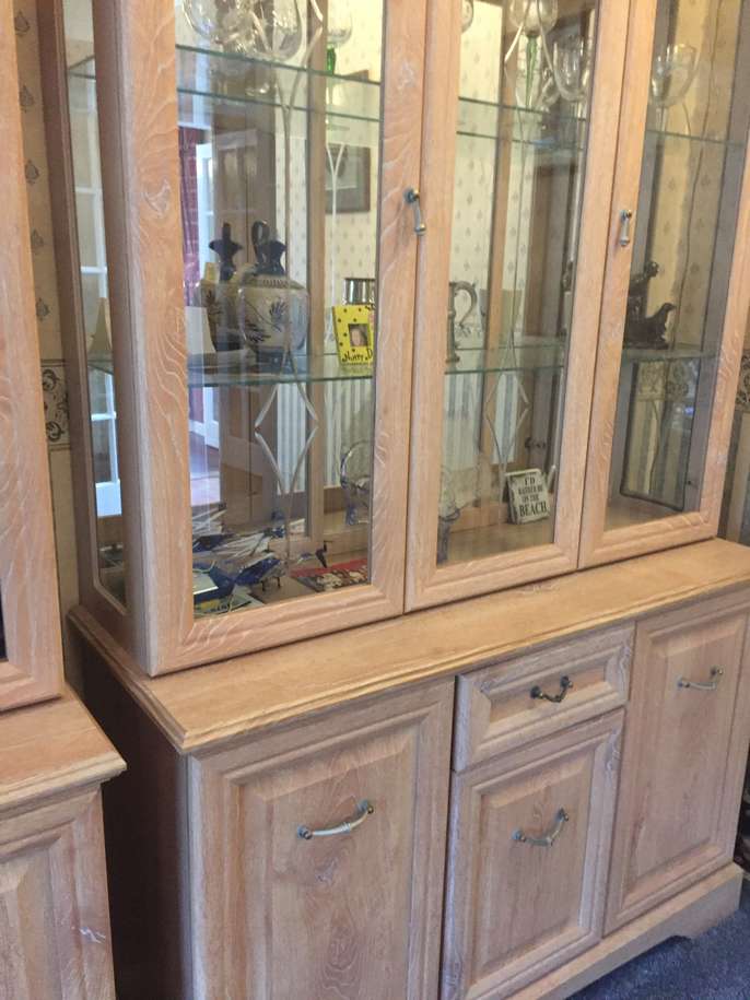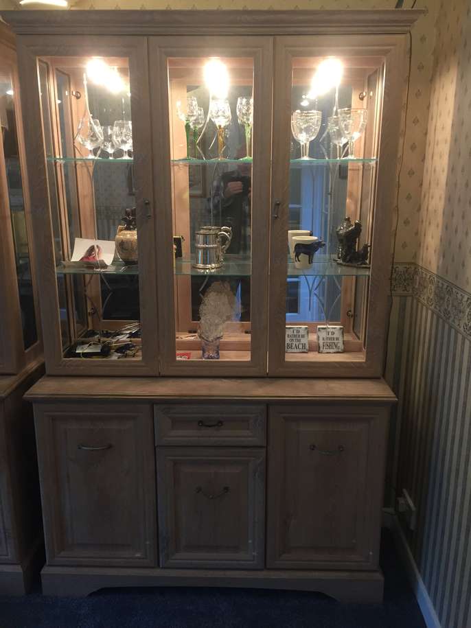 Light Oak effect illuminated Display Cabinet. With two glass shelves and Storage below. In excellent condition and separates for transportation.. I will accept a close offer. Please see sketch for dimensions. Regards Richard