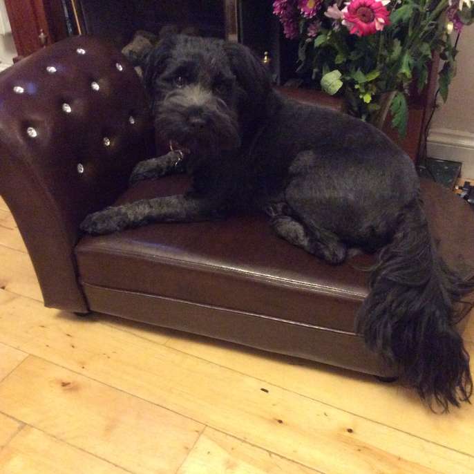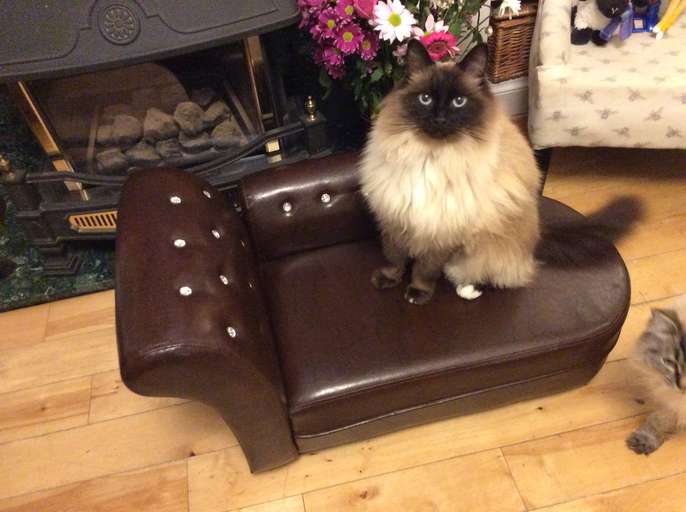 This is a brown faux leather chaise lounge with diamond studs. It’s like new as it was only used to sit dogs on for photography.. and to find rescues a new family. It’s in perfect condition but no longer required, Selling it cheaply as I’m as its a good price for a gift.