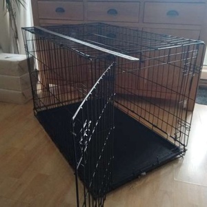 Metal crate, needs a clean as been kept on balcony, only used for a few weeks. Suitable for medium-sized or small dog. Height 63 cm length 90 cm.
