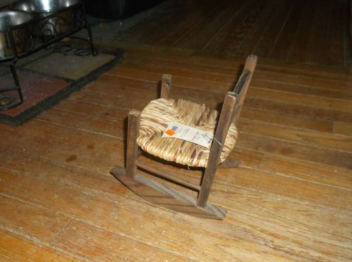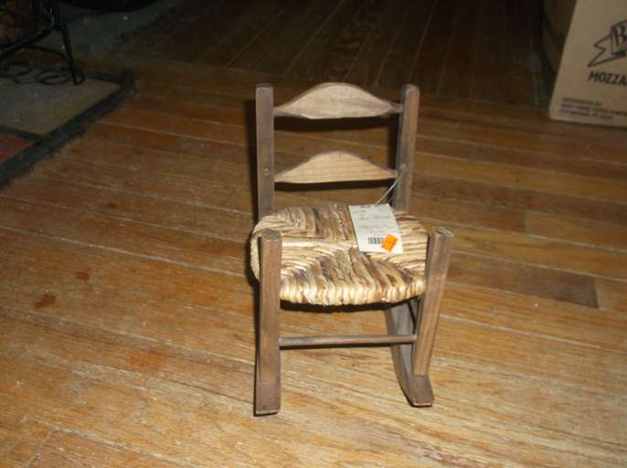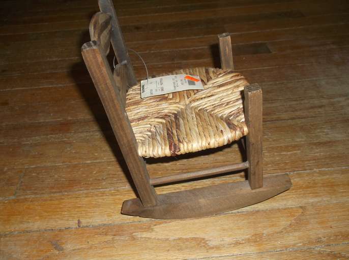 Make of wood and rattan seat. Complete with original TJ Maxx label for $7.99, marked down to $5.00.