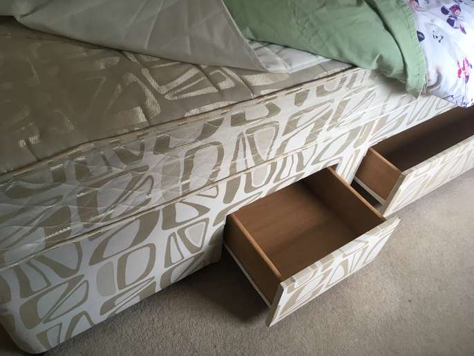 Divan bed with two drawers each side plus mattress. Both in good condition. Width 150cm