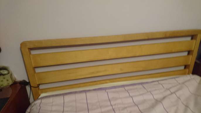 The bed is a standard double size - which is 4 foot 6 inches wide, 6 foot 2 inches long (137 cms x 188 cms). The mattress is about a couple of years old, was moved into the spare room after a year where it has had a little use. The condition of the wooden frame is excellent, and the mattress is clean and in reasonably good condition. The frame is currently dismantled, but this is a link to the same bed frame still available in Dreams. https://www.dreams.co.uk/woodstock-wooden-bed-frame/p/231-00516-configurable