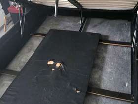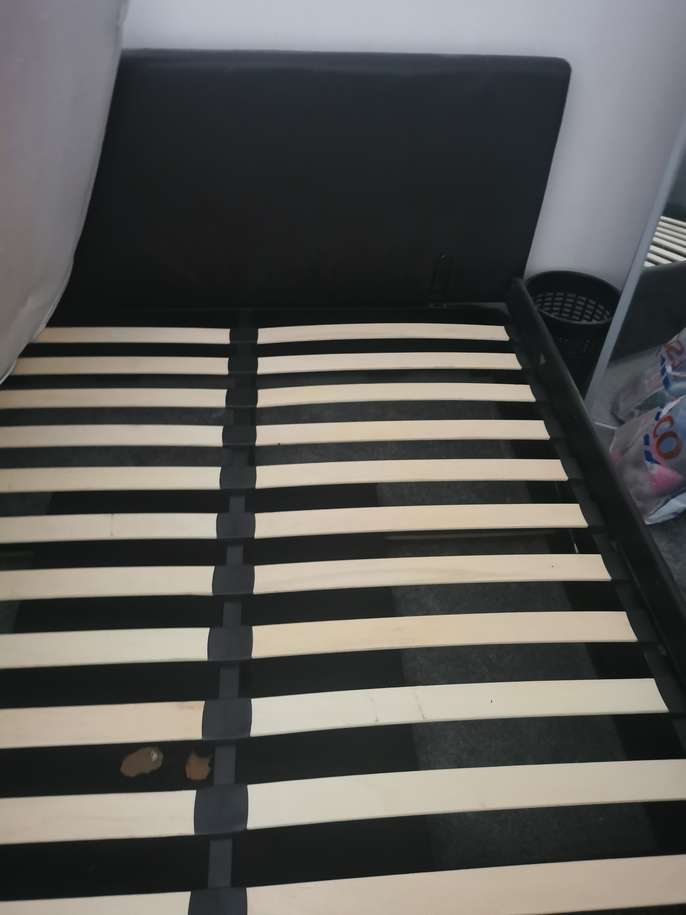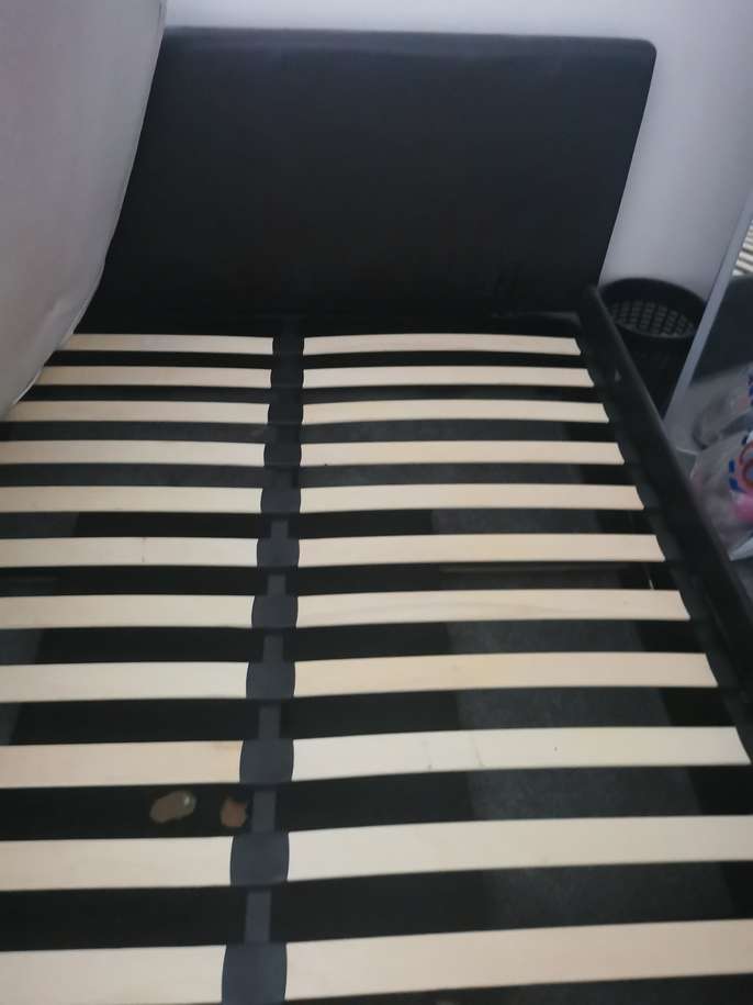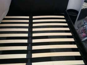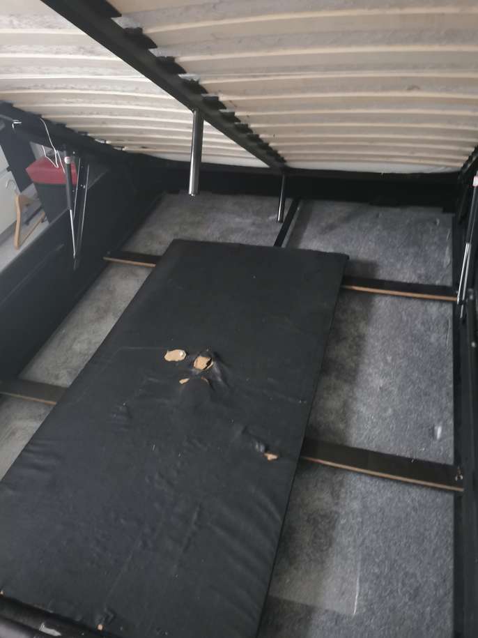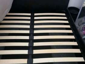 Faux leather otterman storage bed Condition is still usable Gas lift mechanism but one side do come loose Hole in board within storage area Some scuff marks to bed frames…