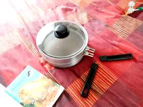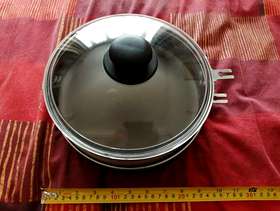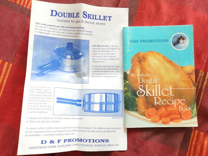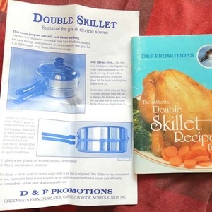 Double Skillet LARGE, unused in great condition has slight scuff mark where the two parts sit on each other, instruction book and recipe detachable handles and glass lid collection North Baddesley