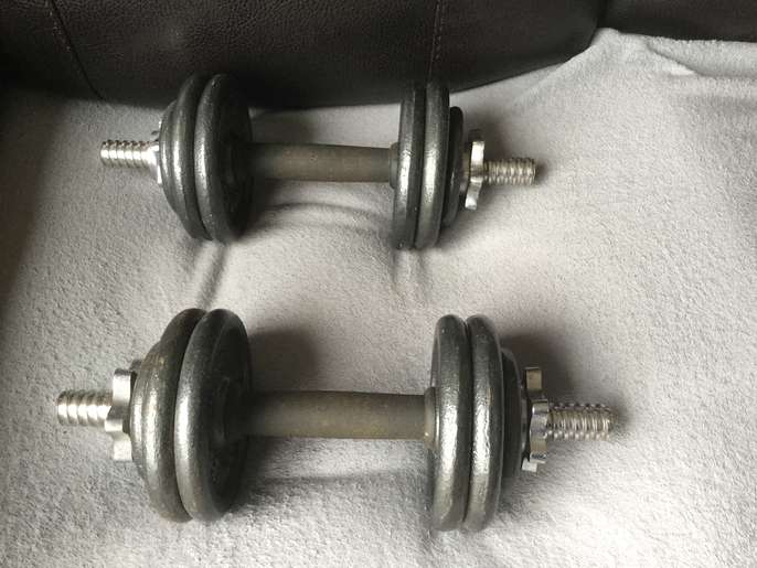 Dumbbells- Pro Power. Set of 2 weighing a total of 14kgs including the bars and locking nuts