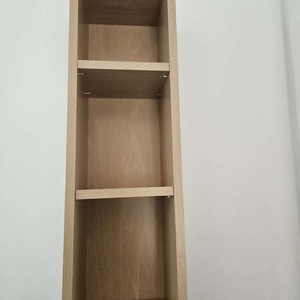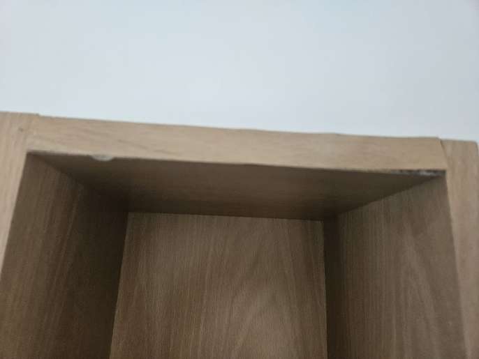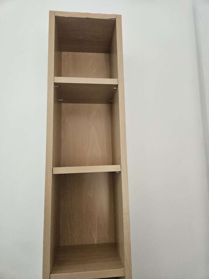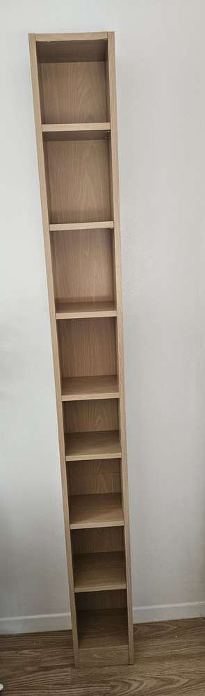 DVD/CD tall unit wood effect Good condition. Has shelves that can be adjusted Sight damage to top that can be seen in pic of top of the laminate strip