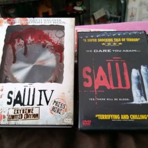 Two dvds, left hand dvd press button and the blade spins & speaks.