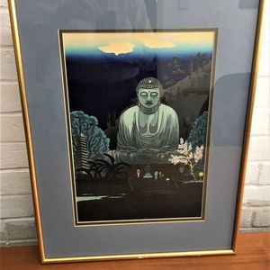 Eastern Buda in Blue 22 x 17 inch Wooden frame (Slight scratch on the gold coloured frame ) Glass front