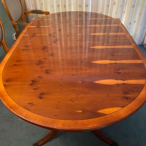 Yew veneer extendable dining table the regular size is 160cm x 100cm and then extends out further. Good condition. Collection only