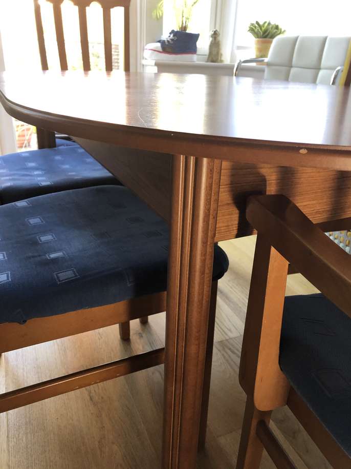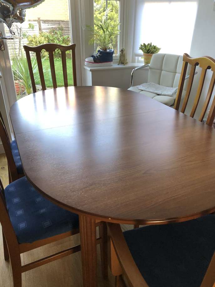 Extendable dining table + 6 chairs - In good condition but selling due to house move. May be able to deliver locally in Fleet / Church Crookham area