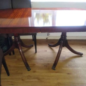 This item is in Old Dean Camberley. Beautiful Mahogany style Dining Table for sale. The table is in excellent condition despite its age. Will seat between 6-10 people. The table has been looked after, having only been used with a table protector and table cloths (not included) It has lion claw feet, a high shine and breaks into 3 parts for transportation. It is 94cm wide and 2.51cm long (fully extended.