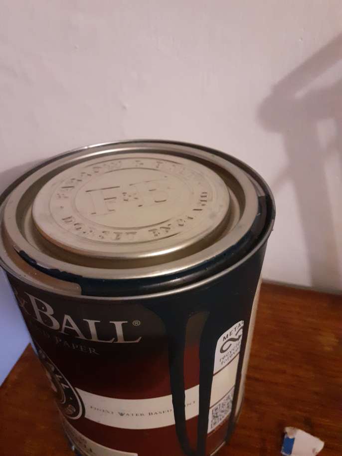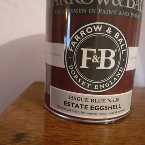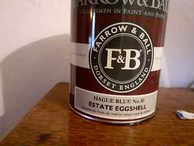 Almost full 1 ltr tin of F & B estate eggshell paint in Hague Blue (no. 30). Only just bought it but colour nit right for my project.
