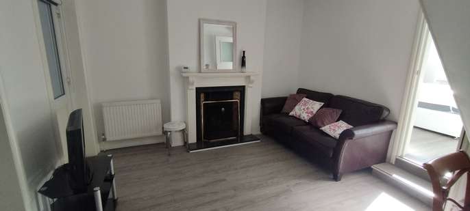 Burgundy faux leather two seater sofa as new Collect from Wimbledon or Morden Can deliver only locally