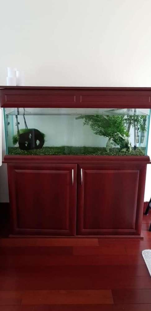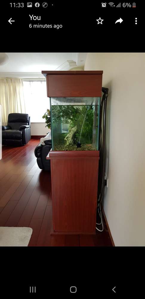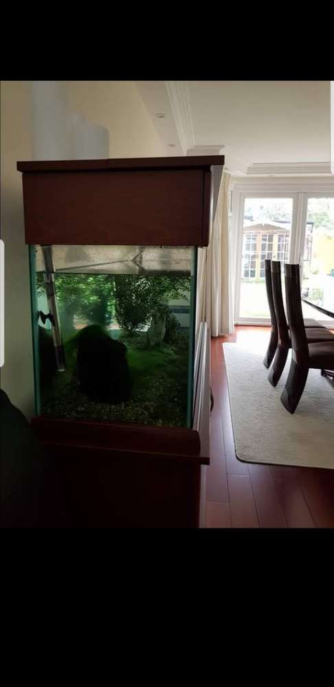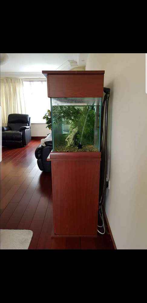 The unit is in good working condition. Fish tank light, heater and filter fully functional. Comes with the suction cleaner too. Lovely addition to your living room. As a young family we are only giving it away as unable to maintain. No fish in the fish tank.