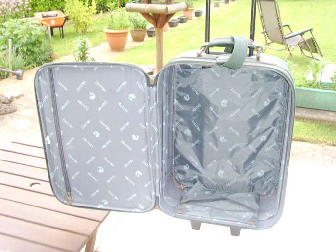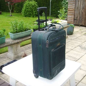 Superb cabin size suitcase by EQUATOR, on wheels, green with many zip compartments for papers etc and security. size is 22 x 14 x 7.1/2 inches. handle drops down within size for 'in plane'. excellent condition as hardly used. flights must surely allowed soon !!?? Amersham