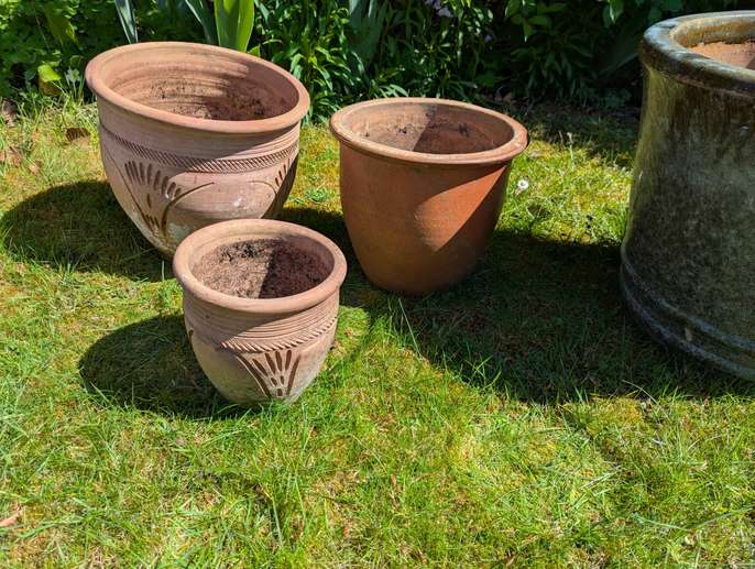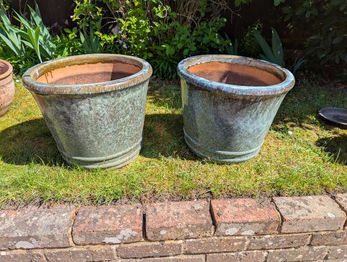 Glazed and terracotta flower pot (s). Two available, slightly different colours and a selection of other flower pots.