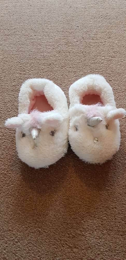 Fluffy Unicorn Slippers (from Accessorize, white, size 11-12) Great condition - Comes from a smoke free home Collection Only - see my other baby clothes, toys, puzzles, books & other baby items for sale