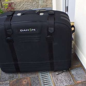 Substantial travel or storage case for a folding bike. 85cm × 66cm × 35cm.