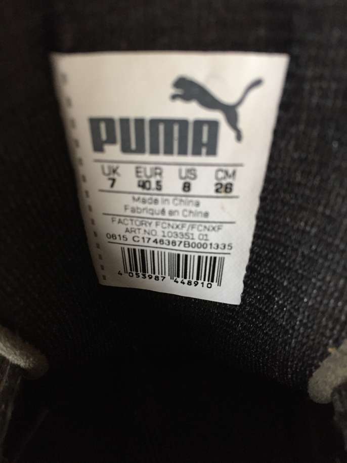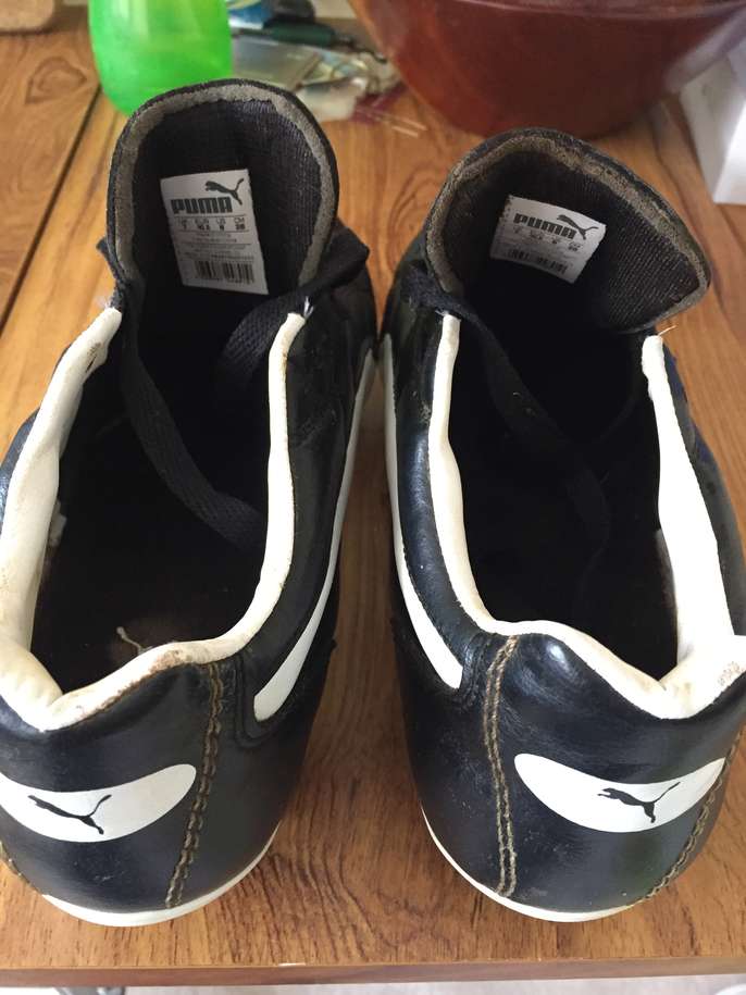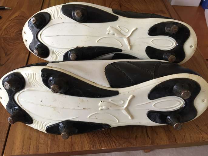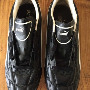 Adult size 7 Puma football boots with metal studs. Black and white with black laces. Used a few times but in good condition. Have been washed, including laces. £8 or make me an offer