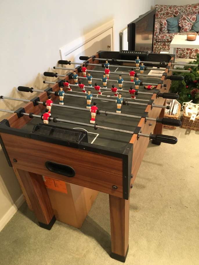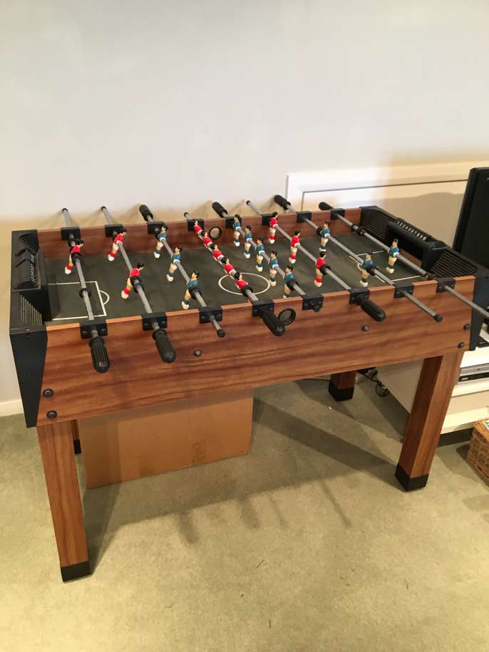 Football table, vgc, includes balls, scorers and spare player, removable legs, Height81cm, Length 123cm, Width 62cm ( plus rods and handles)