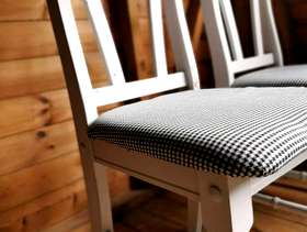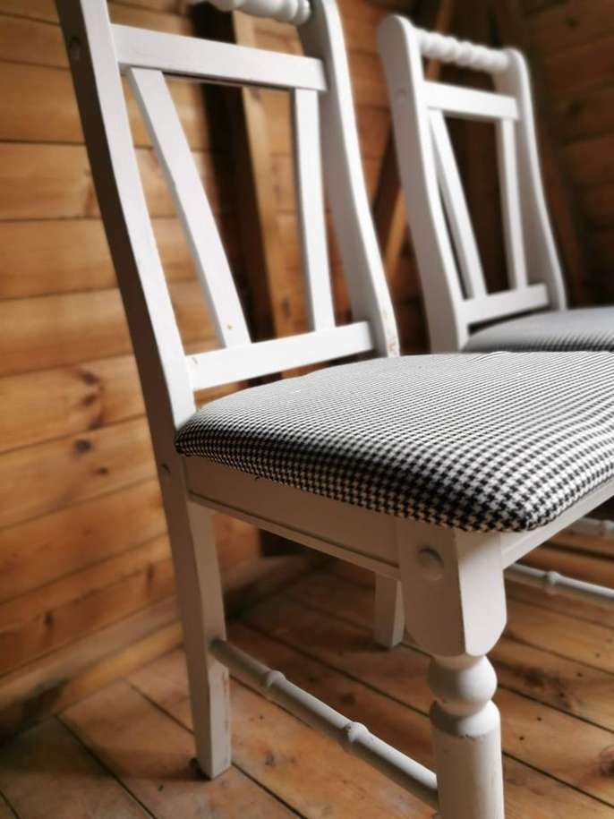 Free delivery to local areas - Upcycled shabby chic white farmhouse pine chairs houndstooth pattern