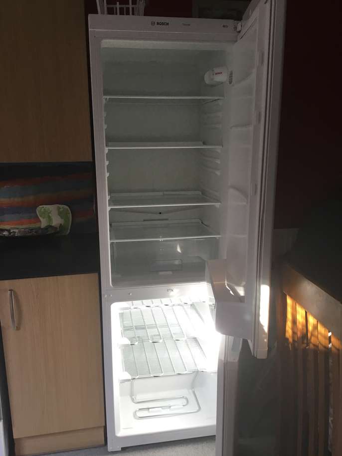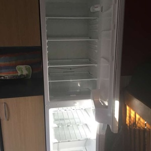 Working well in clean condition only inside hanging shelves broken and basket on the freezer