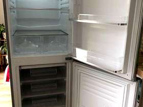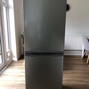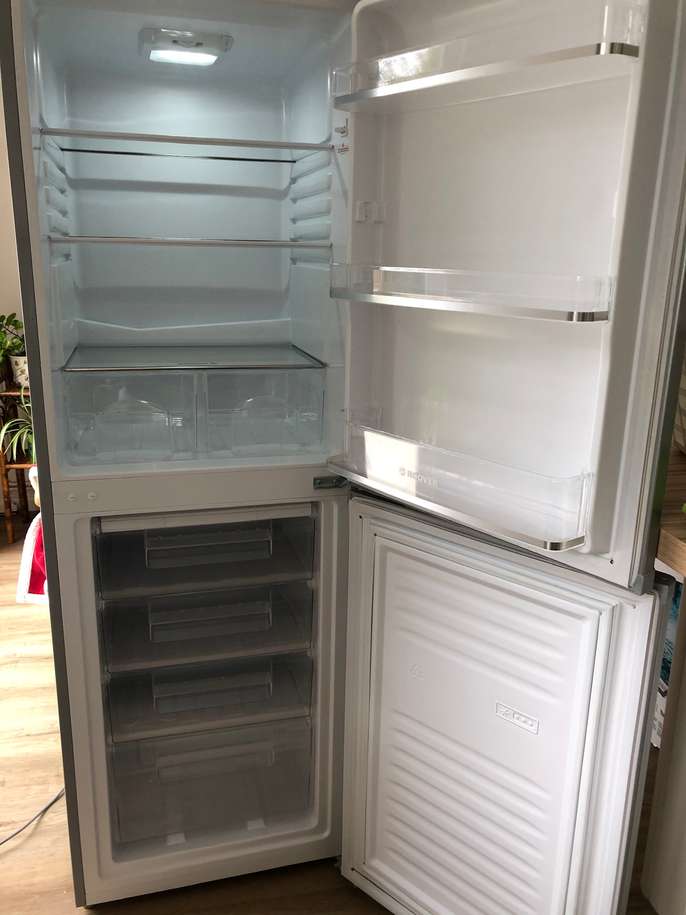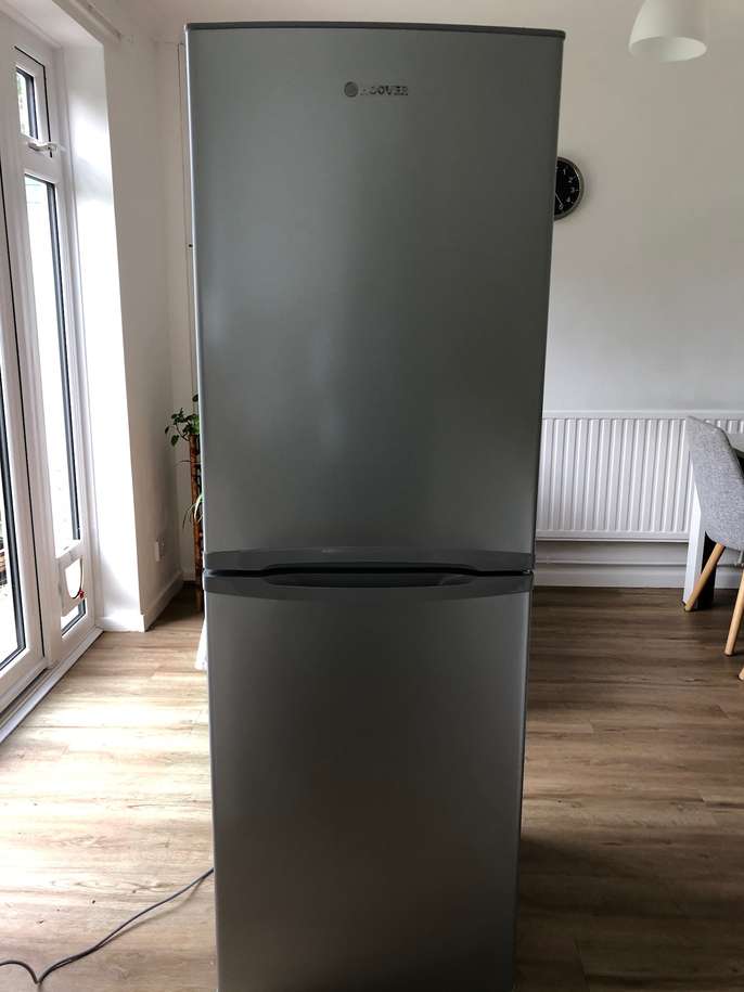 Silver slimline Hoover fridge freezer. 2 years old, LED light in fridge, 4 drawers in freezer Available now. Must sell as moving house and not needed.