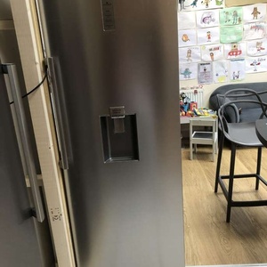 Has a 5 year warranty still running as only 1.5yrs old. Having to sell as no longer fits in new kitchen. Perfect working order as i'm currently using it as you can see from pics. Loads of room and with cold water dispenser on door. Available for collection from Friday 4th Dec. Selling matching freezer also.