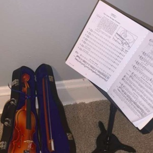Gently used American girl doll violin, stand, and music book