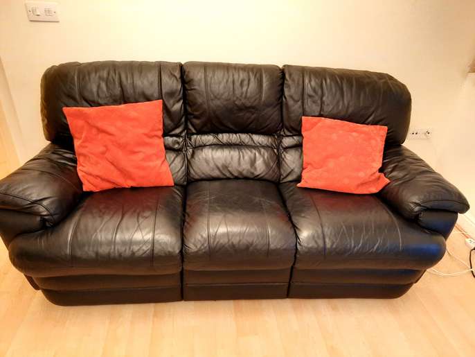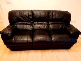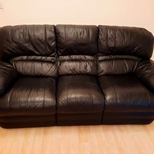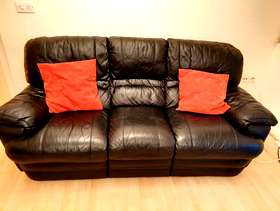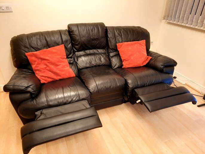Genuine Leather 3 seater settee Black Two recliners - one each end Lovely comfortable settee Very good condition Only selling due to house sale Buyer to collect from Apsley HP3 9HE Also selling a matching 2 seater settee and a single recliner armchair Please see my other adds for details