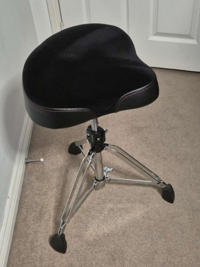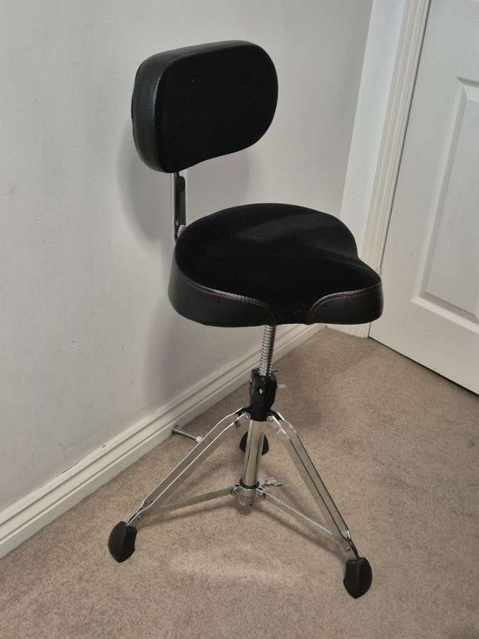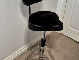 Gibraltar drummers throne/stool with 2 seats (moto/backrest and large round seats) Mint condition, barely used. In original packaging/boxes. Throne with moto seat (cloth top) with backrest (removable) - 9608MB Large round seat (vinyl) - S9608R