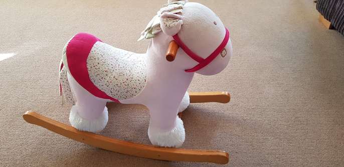 Girls Rocking Horse A gorgeous well put together rocking horse with bells / squeaker in the ears to play with Comes from a smoke free home Collection Only - Please view other items for sale: baby clothes, puzzles, books, toys & other baby items
