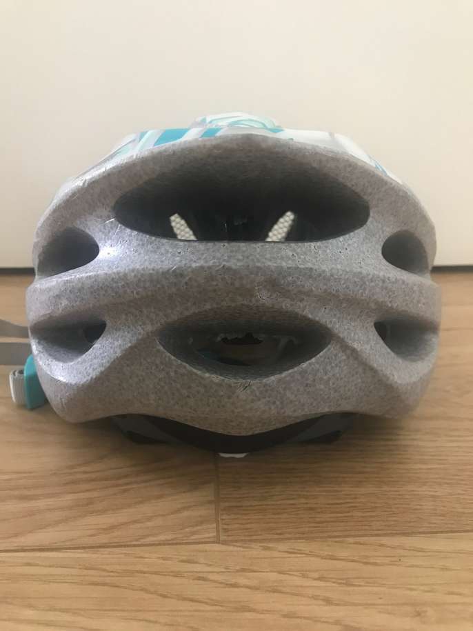 Giro cycling helmet, adult, 269g weight, 54-81cm size, white/grey/green pattern, unused