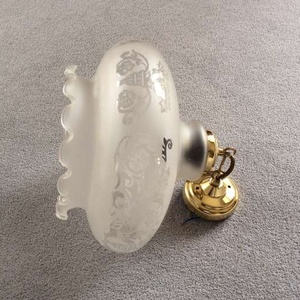 Pretty opaque glass shade with brass ceiling rose, 33cm 'drop', 30cm diameter