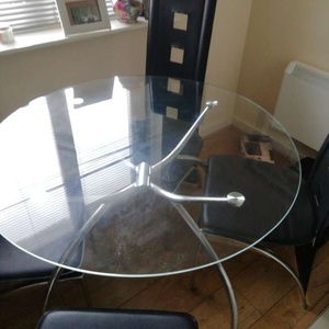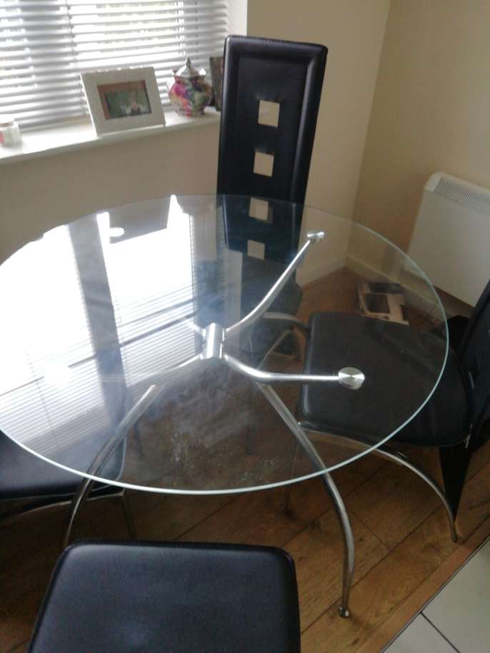 Glass table with 4 chairs This item is in High Wycombe GB All the details Lovely table and chairs in very good condition. Price £50 Time Remaining This listing has finished Category Furniture Post Message