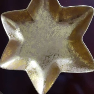 Gold Pottery Star Shaped Dish This item is in Marlow GB All the details Gold Pottery star shaped dish, 29 cm diameter x 5 cm deep, preowned. Price £3 Category Home & Garden Request This Item Ask a Question Post Message