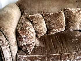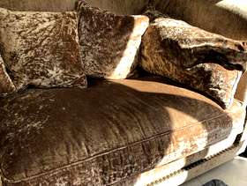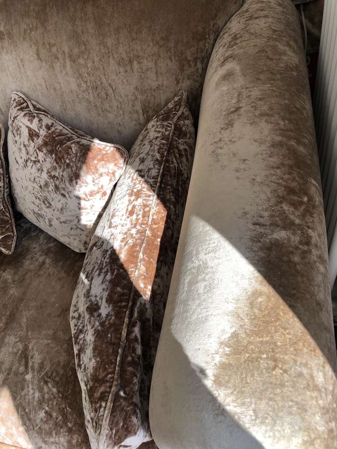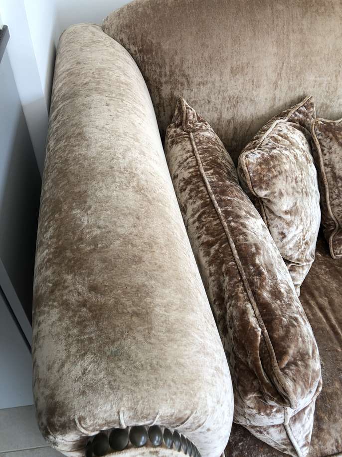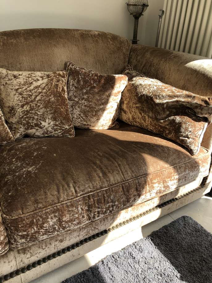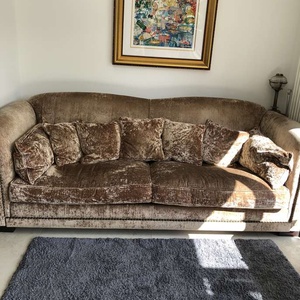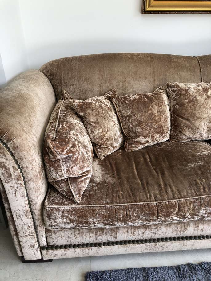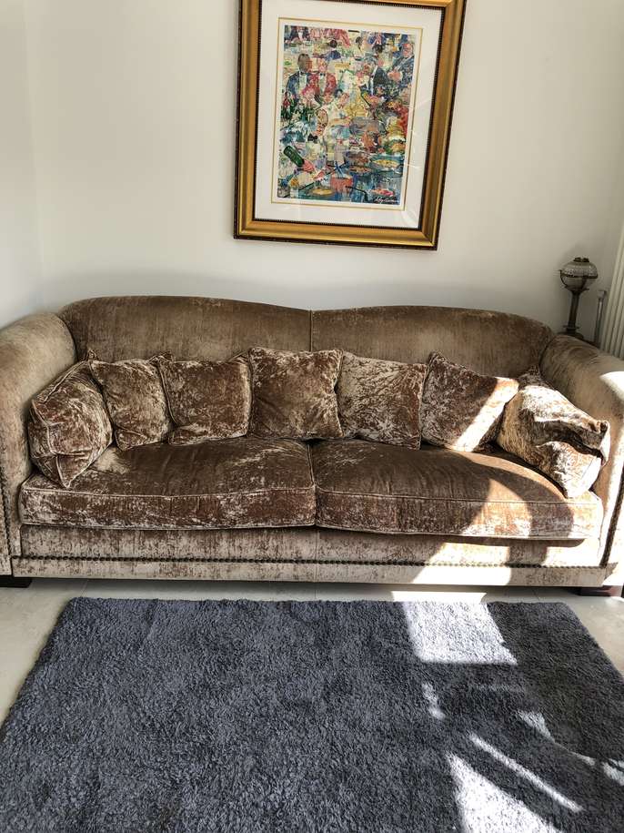 Gold sofa 240cm by 100cm. Cost 1500euro when new. Selling cheap in exchange for taking it away and moving our other sofa from the front room to the back.