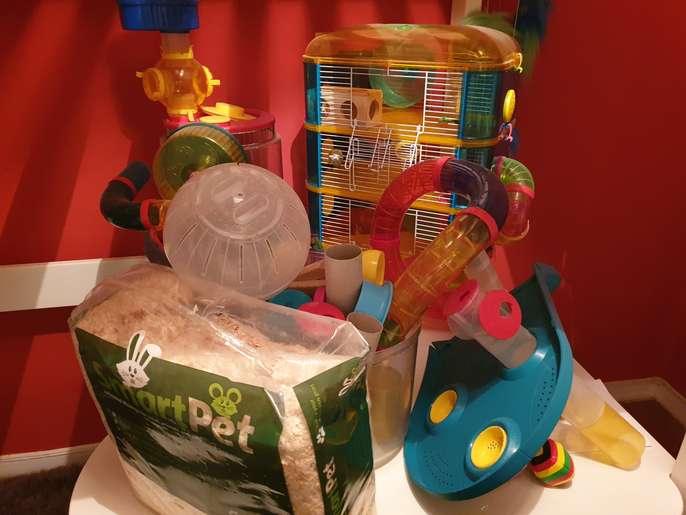 Thinking of buying a hamster and need a hamster Palace? Good quality cage and various attachments/tubes/wheels etc.