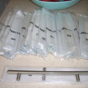 FOR SALE .Brand new still wrapped with fixings . Stainless steel T bar kitchen cabinet handles x 15 from Howdens . 230mm length . Drill holes are 16cm apart . Heavy and solid feel . Good quality