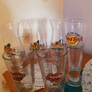 6 x Hard Rock Cafe glasses, 2 x Boston, 1 xOrlando, Newport Beach, Denver and Miami.