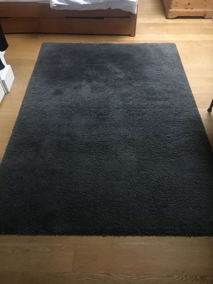 Lovely high pile grey rug, very soft to walk on and sit on. In excellent condition. The dense thick pile also dampens sound. Suitable for a living room or bedroom. It’s durable, stain resistant and easy to care for. It won’t show marks easily. It’s an Adum rug made in Turkey. They’re on sale in Ikea now for £80. For exact measurements please look at the label in the photograph.