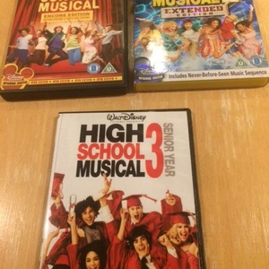 3 x High Musical DVDs - used The 3 DVDS are: - High School Musical - Encore Edition (includes sing-a-long version) - High School Musical - Extended Edition - High School Musical 3 - Senior Year Collect from Guildford GU1 - near the Spectrum Leisure Centre