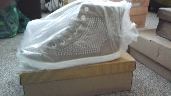 New comfortable soft to the touch high top diamonte boots, stylish, trendy you will be the envy of your footwear. If you love your foitwear add these to your collection. Still in the box.
