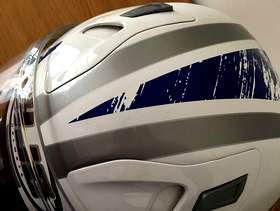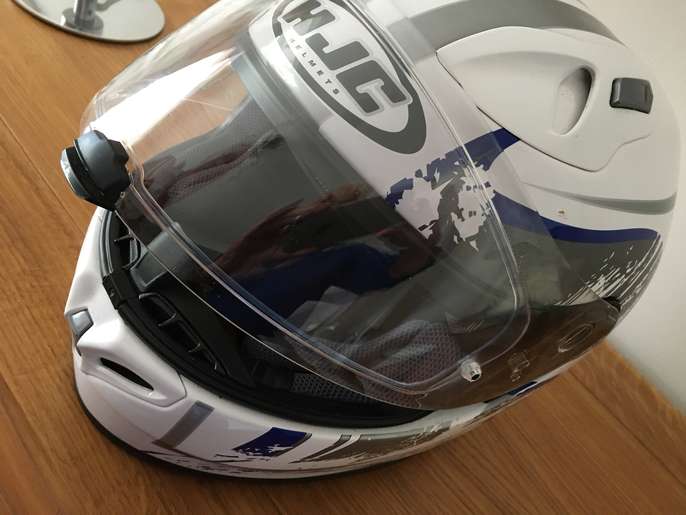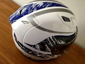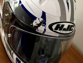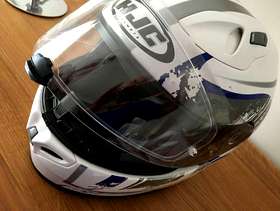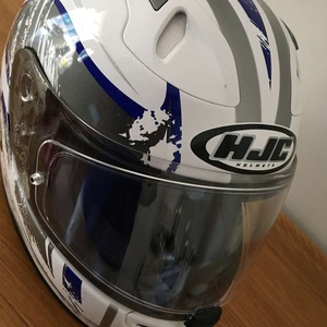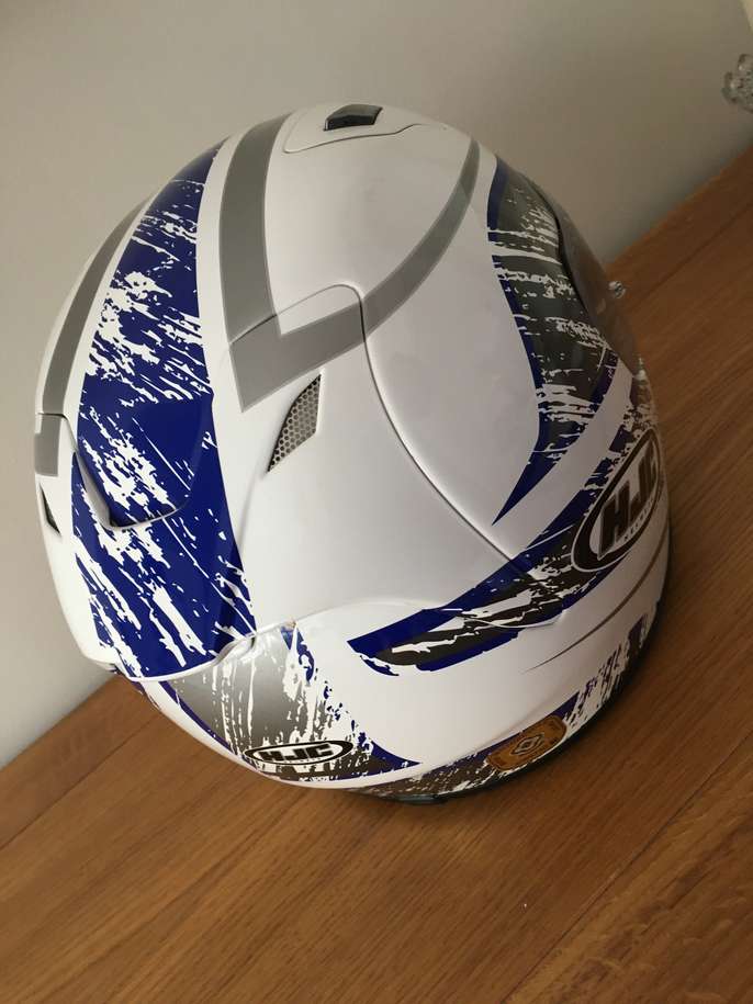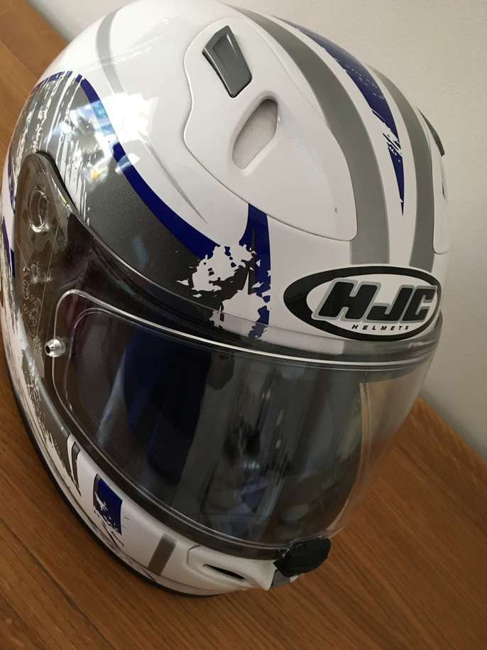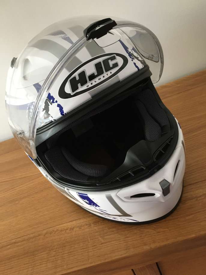 HJC FG-17 Full Face Motorbike/Motorcycle/Kart Racing Helmet - Medium This item is pre-owned but has had very little use due to ill health of the rider. There are 2 barely visible marks which you may be able to see on the photos - just below the visor. The size is Medium 7.1/8 - 7.1/4 (57 - 58cm). Colour: White/Blue multi. Weight Range: 1390g Gloss finish Guaranteed accident free. Collection from GU15 area Sorry - not open to offers.