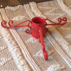 This red Christmas tree stand has been lovingly used by the family for a few years, now it needs a new home, has three securing clamps, takes a 3"-4" trunk and has attractive scroll legs. For local collection