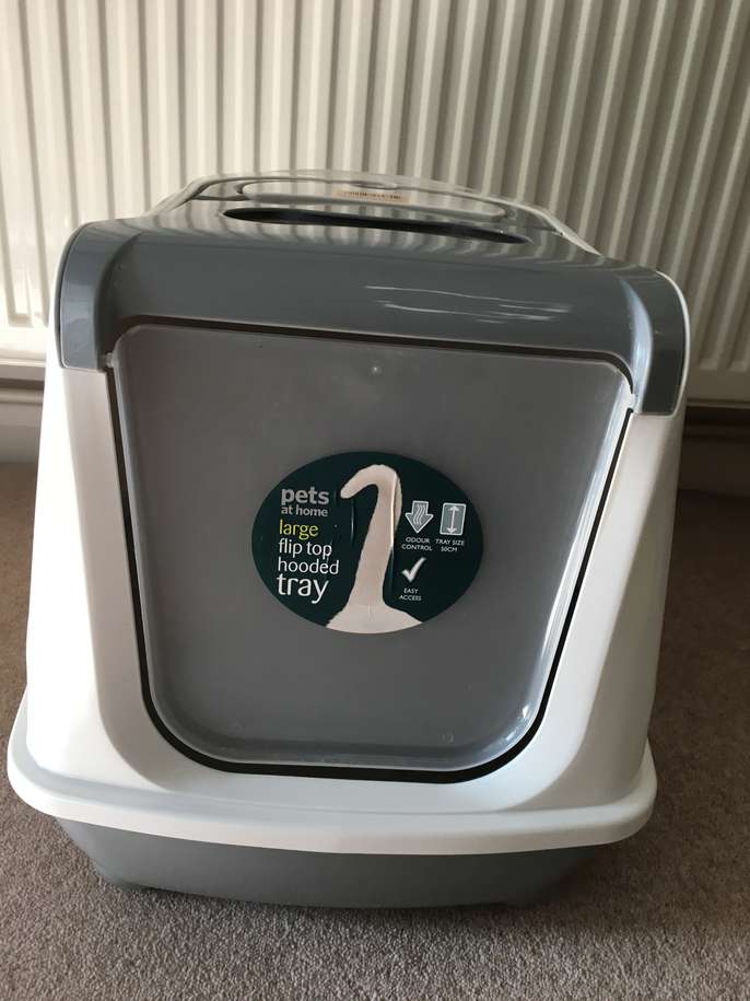 Hooded Flip Covered Cat Litter Box Tray in great condition Large Pets at Home Flip top hooded tray Grey and cream Collection from Camberley area