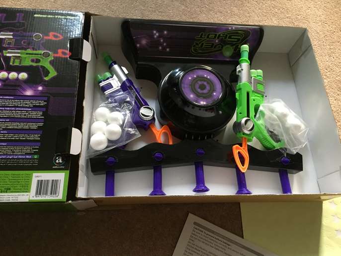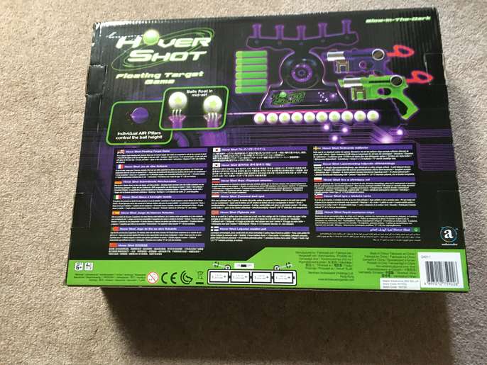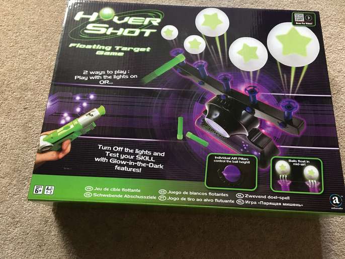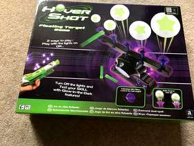 Hover Shot Floating Target Game Like new (used once). The missing stickers from the last photo are on the balls. I could have cut the top two strips off but would prefer you see the honest article! 2 Ways to play - with the lights on or off Suitable for Age 6+ Collection from GU15 area On other sites