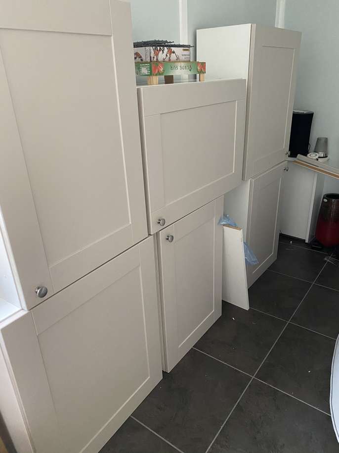 We’ve recently had a new kitchen installed and thought we’d use some of our old cupboards in the garage, but we haven’t got space after all! There are six cupboards in total, four of them measuring 50cm x 72cm and two measuring 60cm x 72cm, depth on all is 25cm. All are in perfect condition. Collection from Aylesbury
